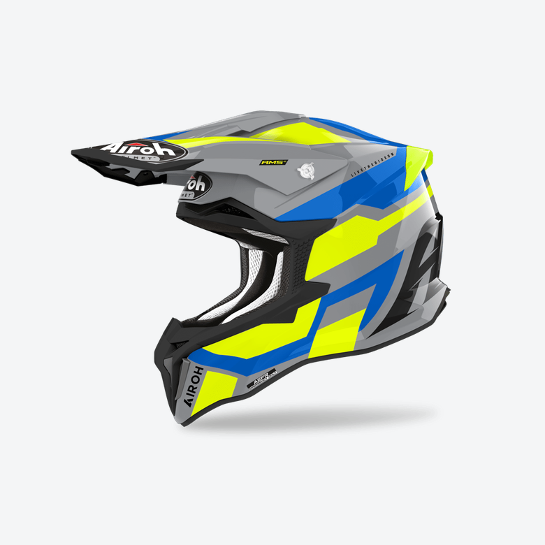 Învelișul exterior din carbon compozit vine în 3 dimensiuni pentru a asigura cea mai bună potrivire posibilă, subliniată de căptușeala interioară analergică, respirabilă și complet detașabilă, echipată cu AEFR (Airoh Emergency Fast Release).